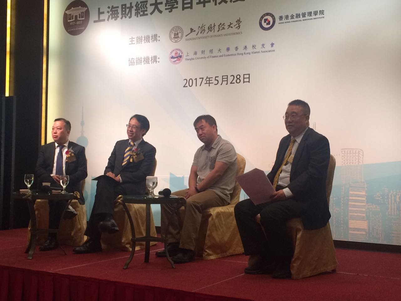 5月28日,上海财经大学百年校庆系列活动之匡时论坛在香港南洋酒店举行。上海财经大学党委书记丛树海等校领导一行,中央人民政府驻香港特别行政区联络办公室科教部副巡视员张总明,大公文汇传媒集团副董事长李大宏,香港中银集团前副总裁朱燕来等,以及香港校友和其他香港政商各界代表,共百余人出席本次活动。凤凰卫视资深评论员李炜主持论坛。