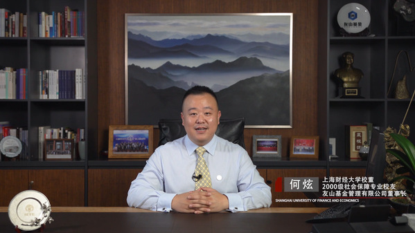 校友代表,我校校董、2000级社会保障专业校友、友山基金管理有限公司董事长何炫先生分享了自己的成长和创业感悟。他表示,毕业是大学生活的终点,更是漫长人生的全新起点。走向工作岗位后更应遵循上财“厚德博学、经济匡时”校训指引,保持追逐正道的初心,怀揣家国情怀,砥砺前行。