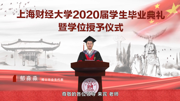 2020是不平凡的一年,上财学子的毕业季却不会匆匆散场。6月24日,上海财经大学以特别的“云”方式,隆重举办2020届学生毕业典礼暨学位授予仪式。上午9点20分,上财学生合唱团毕业生们通过“云”合唱方式拉开帷幕。9点半,毕业“云”典礼仪式环节正式通过“上海财经大学”官方微博、抖音、B站及学校直播平台同步开始。校党政领导许涛、蒋传海、徐飞、陈宏、刘兰娟、方华、陈信元、姚玲珍、朱鸣雄,校长助理郑少华、李增泉,党委常委刘庆生、章益国、周杰普,上财校董、2000级社会保障专业校友、友山基金管理有限公司董事长何炫出席了此次典礼。学校师生及学生家长一同观看了毕业“云”典礼,为2020届毕业生送上毕业祝福!