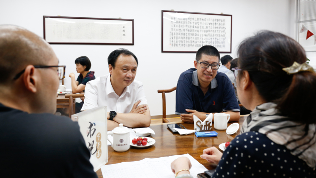 雨雾朦胧,茶香正浓。6月28日,第八期“书记下午茶”在教工之家茶艺书画室举办。校党委书记许涛、校长蒋传海与孙琦、邱月、付时鸣、杜宁华、蒋济泽、王茵、袁洪松、崔翔宇、胡婧等来自九个学院、部门的海归教师同饮下午茶,畅聊身边事,说说心里话,共商学校改革发展大计。校领导徐飞、刘兰娟、方华、陈信元、姚玲珍、朱鸣雄,校长助理李增泉,党委常委章益国、周杰普参加会议。
