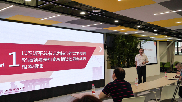 打赢疫情防控阻击战是当前的“大考”。疫情爆发以来,上海财经大学党委坚决贯彻落实习近平总书记关于疫情防控工作系列重要讲话和重要批示指示精神和党中央决策部署,按照教育部党组和上海市委的工作要求,切实扛起防控责任,健全督查督办工作机制,运用现代信息技术,推动防控工作实现决策科学化、管理精准化和服务高效化,人人主动当好大考之人,在疫情“大考”中交出合格答卷。许书记主要从四个方面讲述学校在抗疫中的做法。