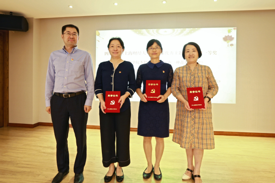 随后,大会进入表彰环节。公共经济与管理学院本科生党支部《有一种青春叫支教》等20个项目分别获得上海财经大学第三届优秀主题党日案例一、二、三等奖。离退休第六党支部书记葛寿昌等10位同志分别获得上海财经大学第二届“我心目中的好支书”和第二届“我心目中的好支书”提名奖。在欢庆的礼乐声中,获奖的集体代表和优秀个人依次上台,与会校领导分别为获奖者颁奖,并合影留念。