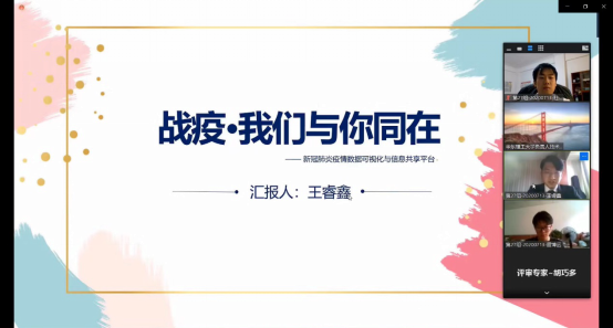 自新冠肺炎疫情爆发以来,不断增长的确诊病例数、四面八方的疫情信息,给全国民众带来了巨大的心理压力。作为一名党员,同时作为计算机专业的同学,我虽不能在一线奋战,但也希望通过利用自己的专业知识,为抗疫尽一份绵薄之力。因此,我在课余时间利用专业所学,带领团队开发完成了“战疫:我们与你同在”平台。该平台从疫情数据可视化、舆情分析、信息汇总、疫情回顾和疫情查询五个方面对新冠肺炎疫情进行了多维度的展示,既实现疫情的实时播报,强调信息的实时性,又对信息的真伪进行了鉴别,减轻信息流给大众带来的焦虑与不适,增强广大群众打赢疫情防控阻击战的信心。很荣幸,我们的作品得到了老师和同学们的认可,这也给了我们继续奋斗前进的动力,我们一定再接再厉,为抗疫尽一份绵薄之力。