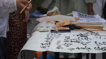 活动现场设置了“笔墨”摊位,同学们亲手在招新地图之上书写出本次活动的主题名——“青春社彩,书信今朝”,同时印上“经济匡时”的印章。青春“社”彩与匡时文化相得益彰,以笔墨纸砚为名,带领着上财同学们徜徉在社团招新的海洋之中,凭借一卷长书,书写上财学生社团的精彩。同学们携纸质地图,以墨为迹,探寻热爱方向,最后于“砚台”中寄予期待,收获惊喜。
