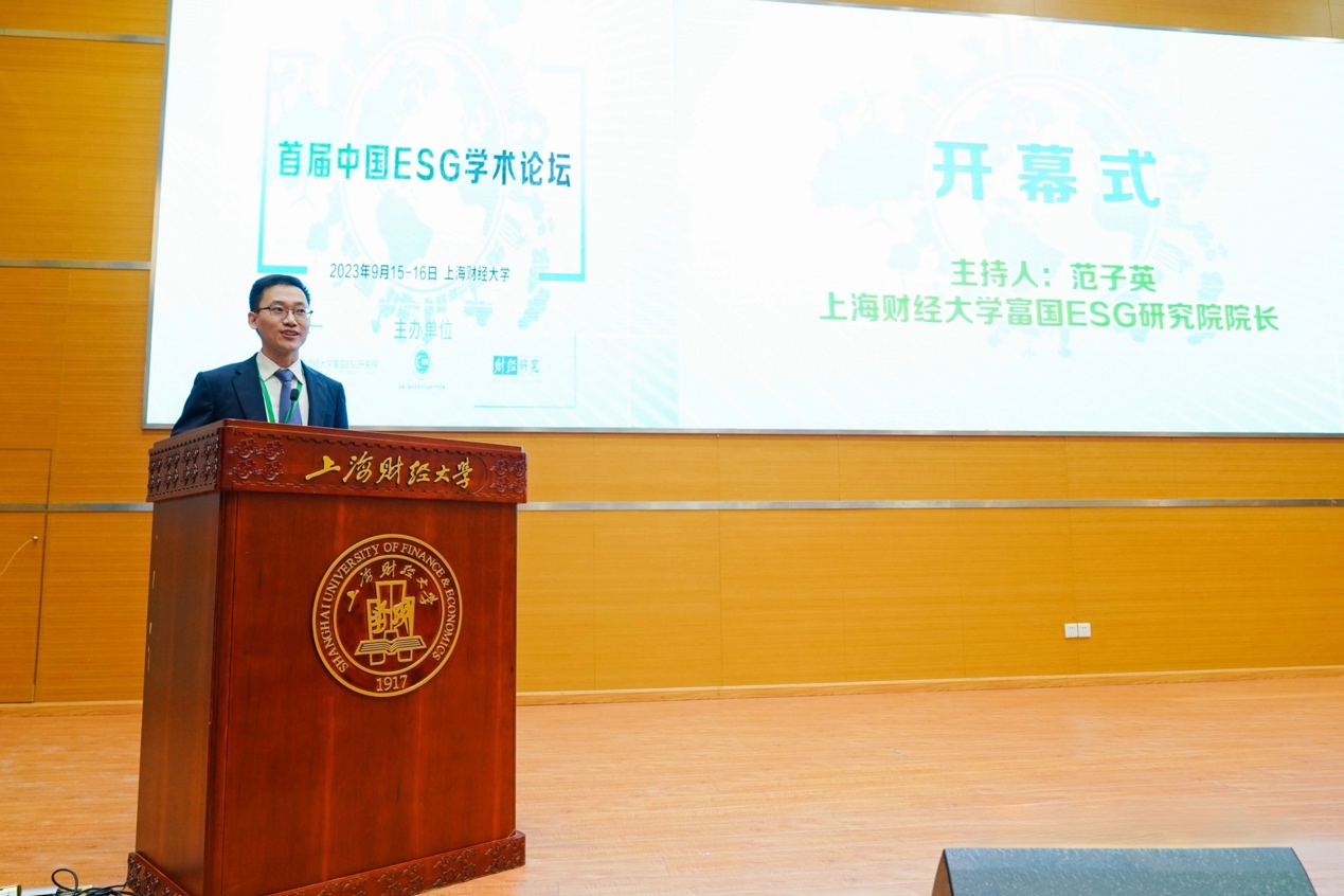 9月16日上午,由上海财经大学富国ESG研究院、上海财经大学中国式现代化研究院和《财经研究》编辑部联合主办的“首届中国ESG学术论坛”在上海财经大学创业中心隆重开幕。本次会议的主题为“中国式现代化征程中的ESG”,上海财经大学校长刘元春、富国基金管理有限公司总经理陈戈、南方科技大学商学院讲席教授曾晓亮、香港中文大学(深圳)经管学院执行院长张博辉、杜克大学尼古拉斯环境学院教授张俊杰、上海财经大学特聘普华永道会计学教授张为国、上海财经大学中国式现代化研究院执行院长徐龙炳等200多名专家学者出席了本次会议。会议开幕式由上海财经大学富国ESG研究院院长、上海财经大学公共经济与管理学院院长范子英主持,主旨演讲环节由上海财经大学公共经济与管理学院副院长张熠主持。