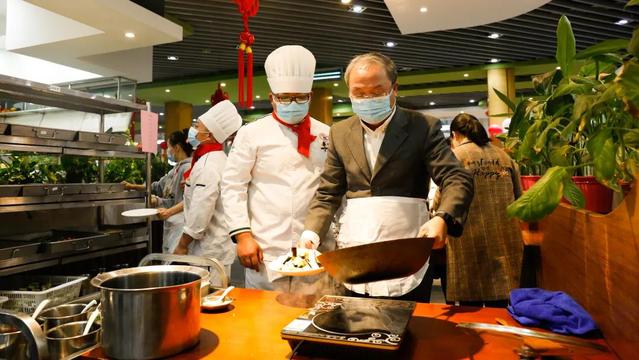 许涛书记、副校长方华、朱鸣雄副书记与同学们一起动手烹制菜肴、包饺子、包汤圆,关心询问大家留校学习生活安排情况,叮嘱同学们要坚持做好防护、注意安全,加强锻炼,度过充实快乐的假期。