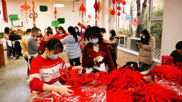 除夕当日下午,部分留校同学欢聚第一食堂动手包汤圆、包饺子,烹制家乡菜,DIY体验做花灯和中国结。食堂里张灯结彩,喜气洋洋,校党委书记许涛、副校长方华、党委副书记朱鸣雄,相关职能部门负责人也亲临现场,与同学们共庆佳节。