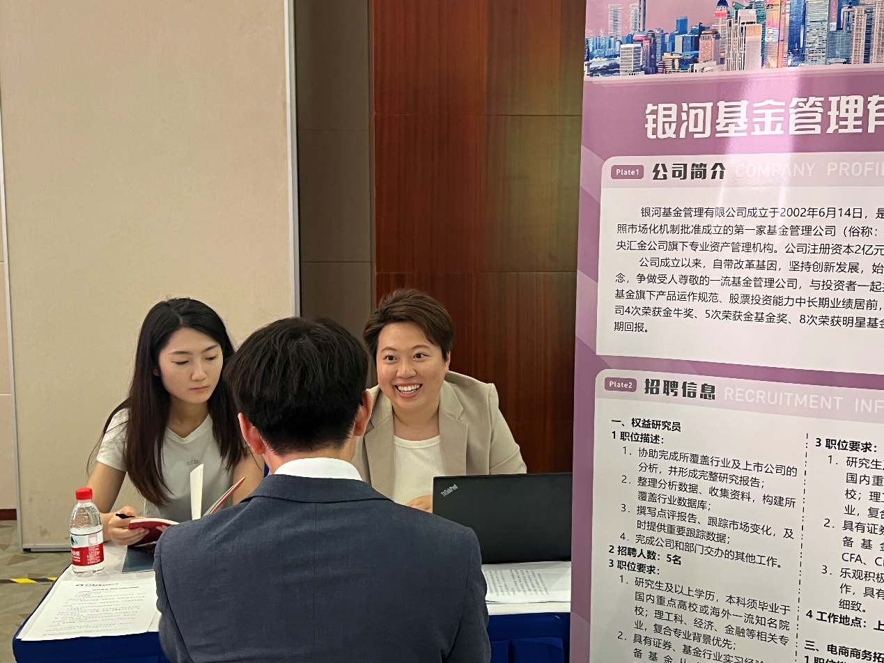 9月19日下午,第十四届“陆家嘴金融城名校直通车”招聘会——上海财经大学站在校顺利举办。来自银行、证券、保险、基金、期货等众多金融细分领域的56家企业参与招聘会,提供5000余个优质岗位,为学生进入心仪企业提供海量选择,吸引校内外600多名学生参加,也有复旦大学、同济大学、华东师范大学、南京大学、香港中文大学、曼彻斯特大学等18所海内外名校学子前来参会。
