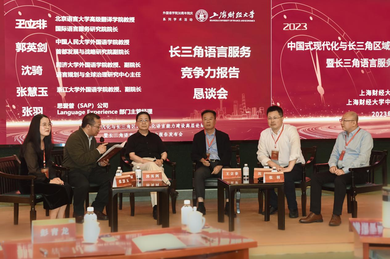 9月23日,由上海财经大学外国语学院、上海财经大学中国式现代化研究院主办的中国式现代化与长三角区域一体化语言能力建设高层论坛暨长三角语言服务竞争力报告发布会在我校顺利举行。本次高层论坛由上海财经大学爱沙尼亚与波罗的海区域研究中心、上海财经大学-赫尔辛基大学联合跨文化研究中心、上海财经大学长三角与长江经济带发展研究院、上海市外文学会、北京语言大学国际语言服务研究院(国家语言服务出口基地)、同济大学语言规划与全球治理研究中心、中华美国学会财经分会协办。