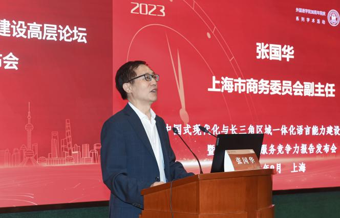 上海市商务委员会张国华副主任指出加强“政产学研用”一体化机制,提升非通用语言能力,才能更好地服务国家现代化建设需求。
