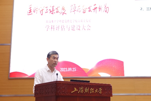 9月25日,上海财经大学学科建设大会在武川路校区创业中心一楼报告厅召开。校党政领导、各学院班子成员、职能部处主要负责人、学位评定委员会委员、学术委员会委员、学科建设委员会委员、研究生教学指导委员会委员、学科带头人和学科骨干代表等出席会议。