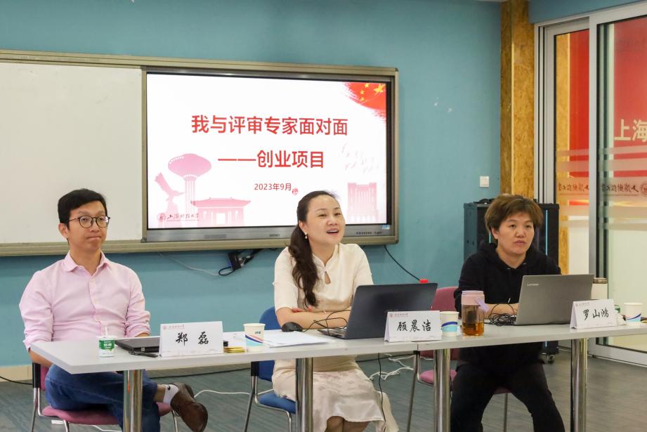 9月23日下午1点,在大学生活动中心A104,举行了“我与评审专家面对面”活动,2023年大创项目创业组成员参会。上海创业指导专家顾晨洁老师,商学院郑磊老师,法学院罗山鸿老师出席了此次活动。