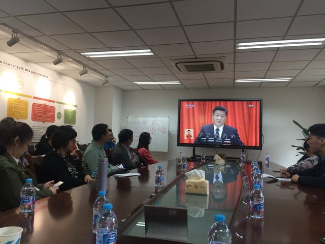 中国共产党第十九次全国代表大会10月18日上午9:00在人民大会堂隆重开幕,上海财经大学全体师生员工热切关注十九大。按照学校党委要求,全校各级党组织把收听收看党的十九大开幕会议盛况作为一项重要的政治任务,会前积极创造条件,精心组织,确保落实到每一个基层支部、每一个党员和尽量广泛的师生员工。