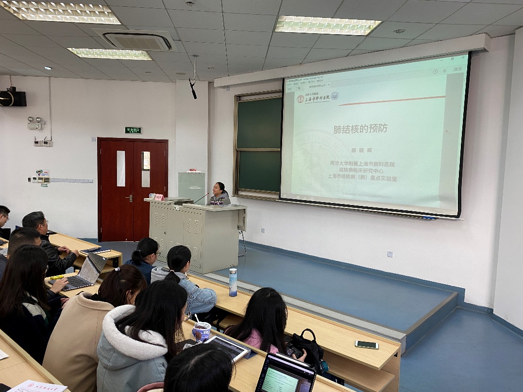 3月23日下午,在武东校区梯五教室,医中心沈卫明主任和上海市肺科医院结核病科郝晓晖副主任医师共同参加防控结核病的主题讲座。沈主任向同学们介绍了呼吸道传染如新冠肺炎、肺结核防控的严峻性,呼吁大家积极行动预防传染病;郝主任介绍了人类与结核病战斗历史,围绕结核病在人群中传播的途径,详细讲解了正确预防、切断传播的措施,提醒同学们平时养成良好的生活习惯能够大大减少呼吸道传染病的传播。