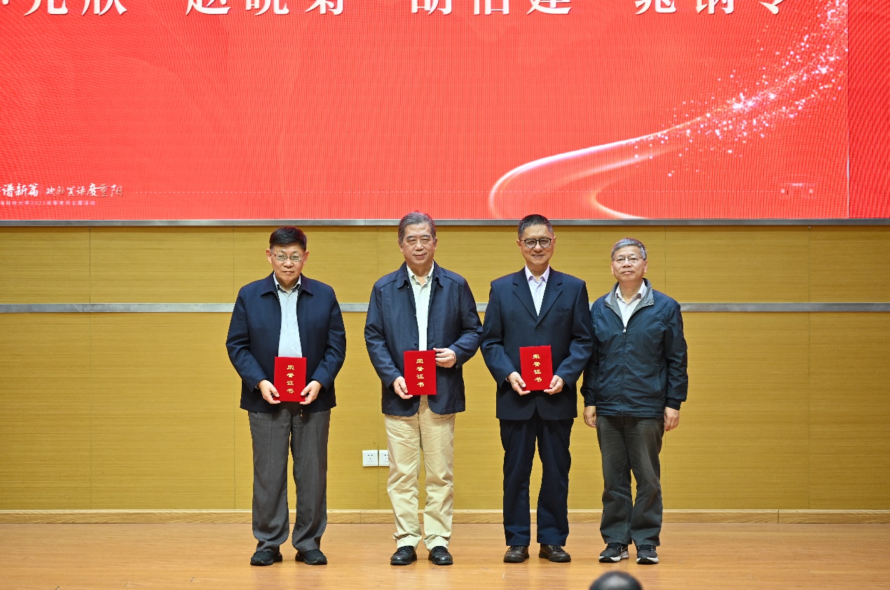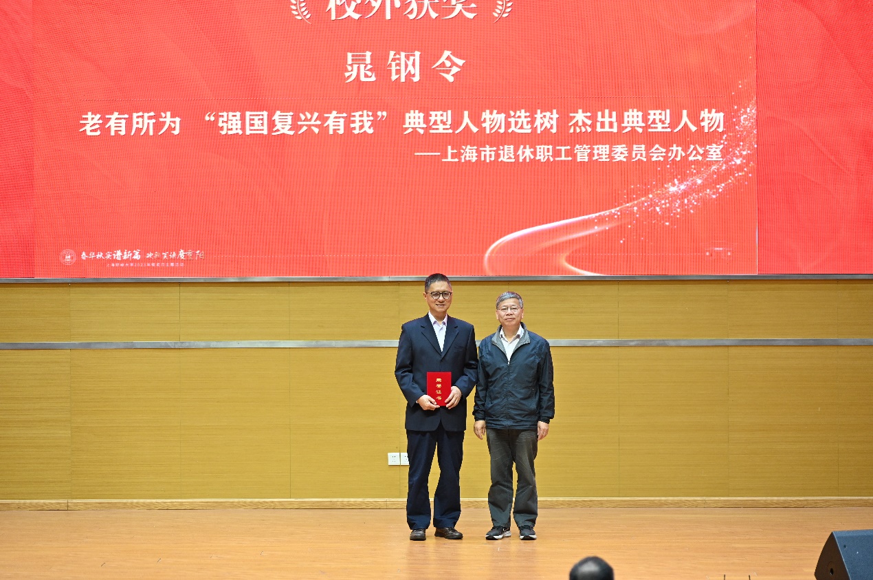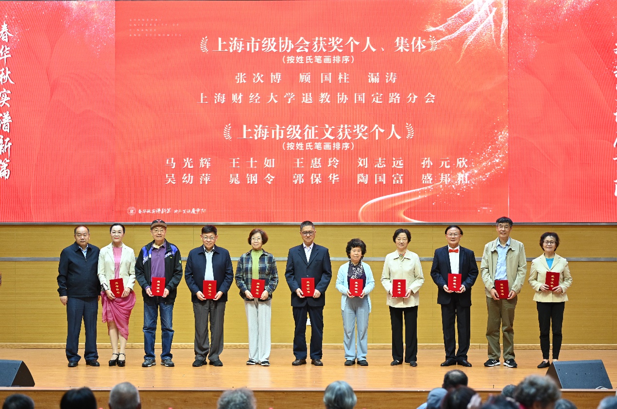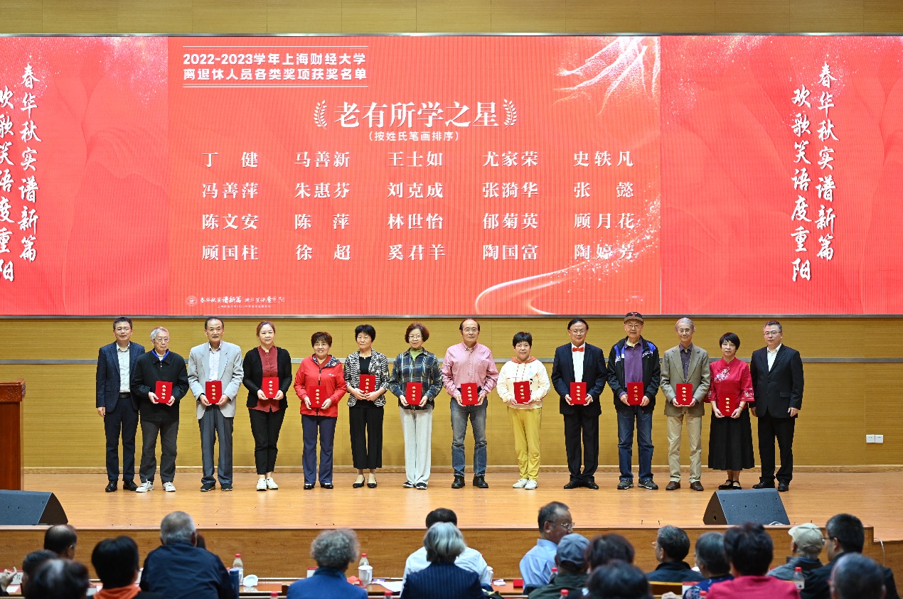 离退休党委书记牛文光宣读2022-2023学年上海财经大学离退休人员表彰决定。校党委组织部部长周国良、宣传部部长曹东勃为“老有所为”之星、“老有所乐”之星、“为老服务”之星和“老有所学”之星颁奖。校长助理刘莉亚为“阳光老人”之星颁奖。