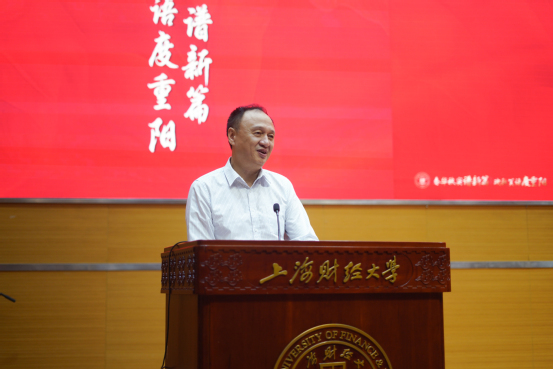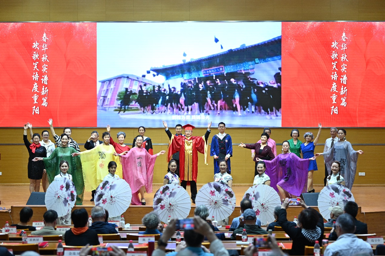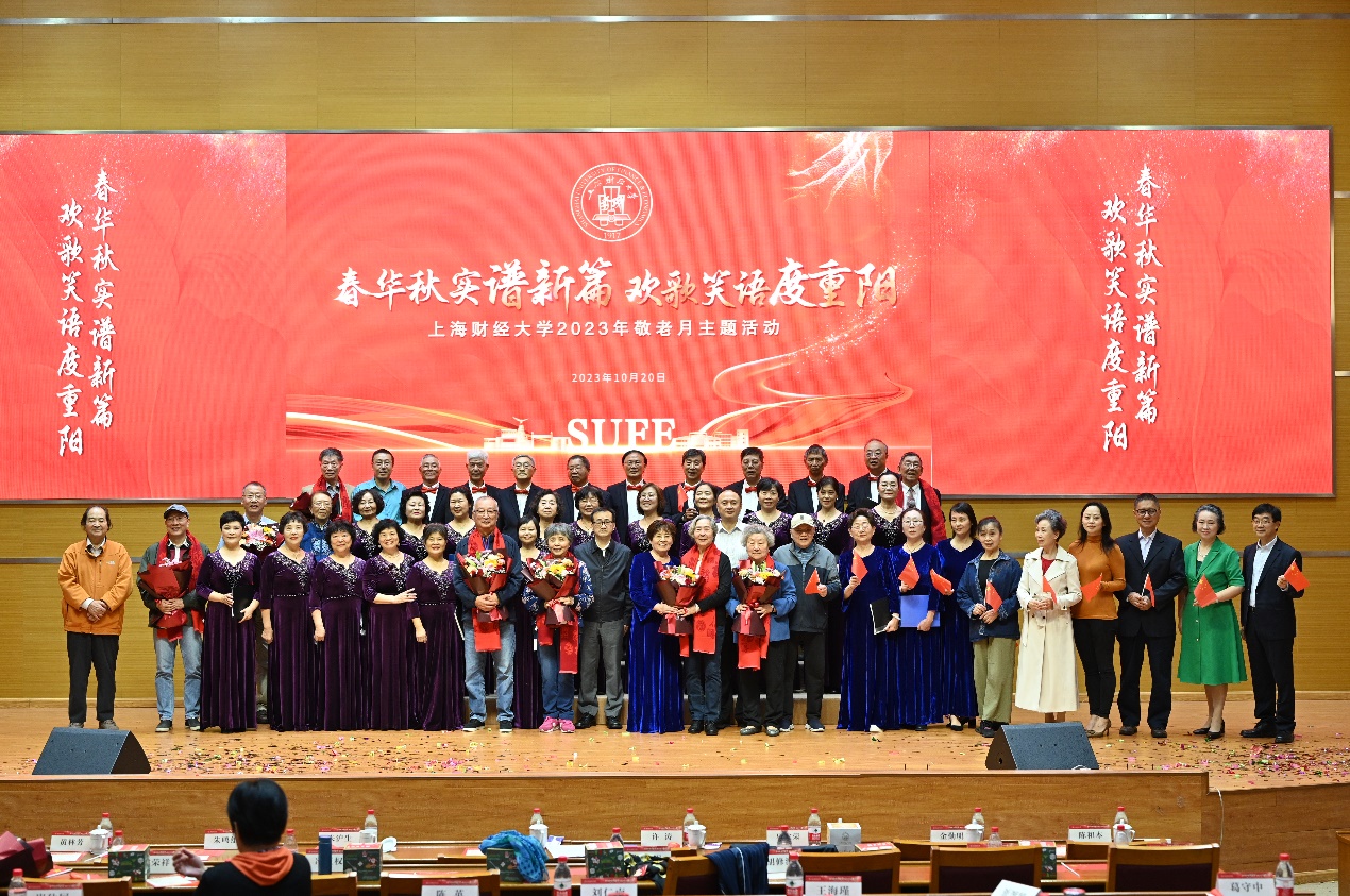 重阳逢金秋,同心向未来。为弘扬中华民族尊老、敬老、爱老的传统美德,丰富离退休老同志的文化生活,10月20日上午,上海财经大学举办“春华秋实谱新篇,欢歌笑语度重阳”2023年敬老月主题活动。上海市教卫工作党委二级巡视员、老干部处处长金勤明,校党委书记许涛,校长刘元春,校党委副书记朱鸣雄,校长助理刘莉亚,各学院(部、系、所)和相关职能部门负责人出席。离退休老领导,受表彰老同志,寿星代表,观众代表及演职人员欢聚一堂,载歌载舞,共度重阳佳节。活动由退休老教师刘仁南、岳咬兴以及离退休工作处处长王青云主持。