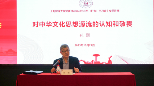 孙顒老师“对中华文化思想源流的认知与敬畏”的报告令人耳目一新,他在文化传承上的责任与担当也令人敬佩。他从一个作家的视角切入,通过历史人物的选取讲述,让我们领略了中华文化的源远流长。对我触动比较深的是他关于“中华祖先对于世界起源认知的独特性“和”中华祖先的科学思维“的解读。这些挖掘将历史基因与未来的传承有机连接在一起,对于当下青年人加强文化自信,赓续中华文脉很有意义,对我们如何做好教育引导工作也很有启发。