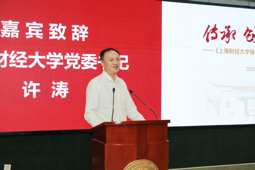 许涛书记首先致辞。他代表上海财经大学党委对校报复刊40周年表示祝贺,对一批批校报人的付出和为学校发展作出贡献的各位领导、老师致以崇高的敬意,对多年来一直关心、支持校报发展的各级领导、校友、老师和同学表示衷心的感谢!