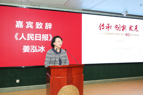 为深入学习贯彻党的二十大精神和习近平总书记对宣传思想文化工作作出的重要指示,不断推进新时代新征程学校宣传思想文化工作高质量发展,进一步交流办报经验,探索融合发展路径,为高校宣传思想文化工作交流研讨搭建平台,10月27日上午,传承 创新 发展——《上海财经大学报》复刊40周年座谈会在国定路校区行政楼一楼报告厅举办。