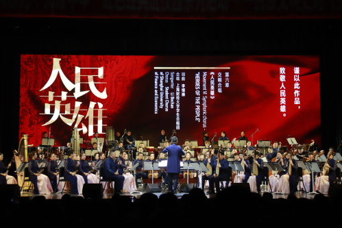 5月6日18:30,上海民族乐团原创民族交响史诗《英雄》在上海财经大学艺术中心精彩上演。本场演出是由上海市教卫工作党委、共青团上海市委与上海财经大学党委共同主办的“潮涌东方,光耀中华——庆祝建党一百周年,红色经典进校园”系列活动之一。演出得到了上海市慈善基金会、上海梅鹤雅集金融文化沙龙大力支持。校党政领导许涛、徐飞、陈宏、刘兰娟、方华、姚玲珍、朱鸣雄,党委常委、统战部部长周杰普与700余名上财师生一同观赏演出。