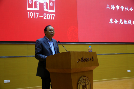 上海市学位办主任束金龙教授代表上海市学位办对会议在上海、在上海财经大学召开表示热烈的祝贺,并祝贺上海财经大学百年华诞。随后,他介绍了上海市学科发展现状、分享了对“双一流”建设和学科评估的思考以及“高峰高原”学科建设计划。他指出研究生教育彰显学校特色和水平,学科是知识的分类和学校的基本细胞,财经类学科建设委员会应做到需求导向和问题导向。