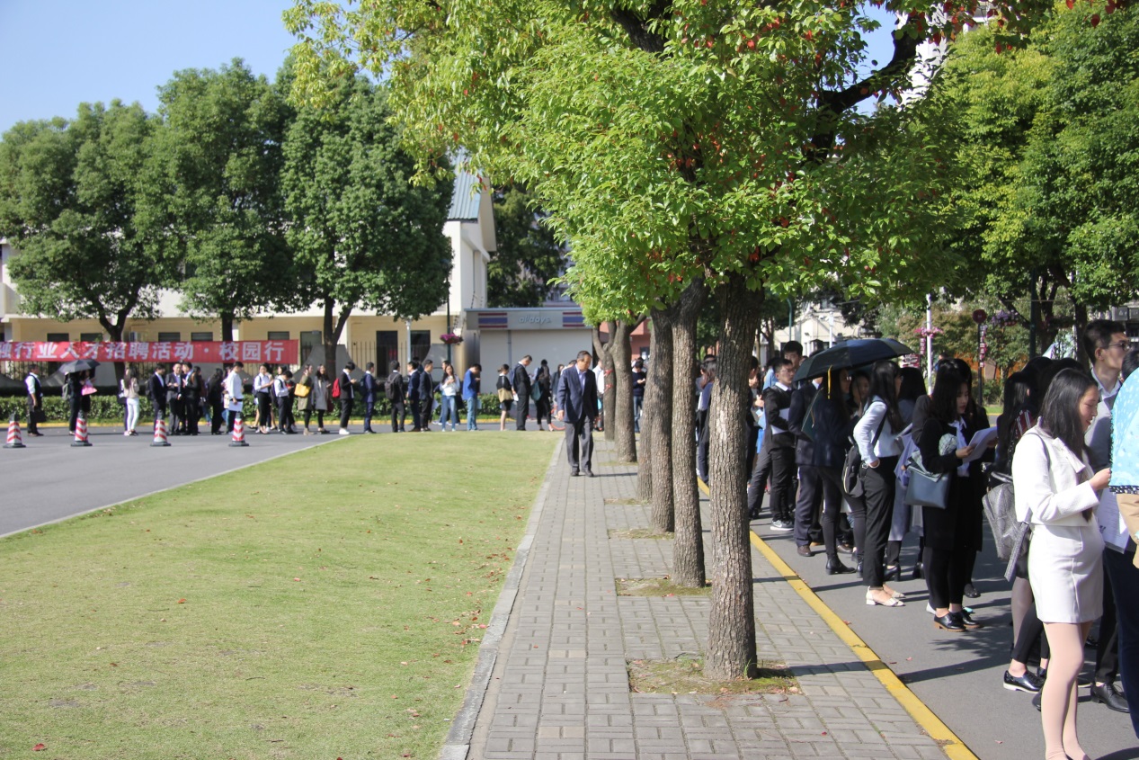 1点30分,招聘会准时开始,同学们手持简历,在自己心仪单位的展位前依次排队,等候HR现场单面。爱建证券、富邦华一银行、宁波银行摊位前早早排成多路长队。面试环节,我校学子表现沉稳,态度主动,频频获得HR的肯定。
