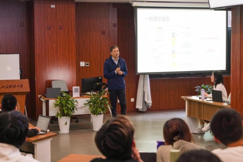 校党委宣传部部长、马克思主义学院党委书记曹东勃教授也在课堂现场作了补充分享。他建议同学们学会发现经济运行中的文化符号、文化元素、文化表达,在文化自觉的基础上坚定文化自信。他还以日前国内14所高校老师联合做“丢钱包”实验为国人诚信度正名、与西方学者理性对话的案例,阐释了中外文化表达的异同和学术研究的重要意义。曹老师还鼓励同学们努力学习专业知识、提升对社会的洞察和对文化的理解能力,更加全面地打开“黑箱”,更好地把握沉潜在经济运行背后的深层力量。