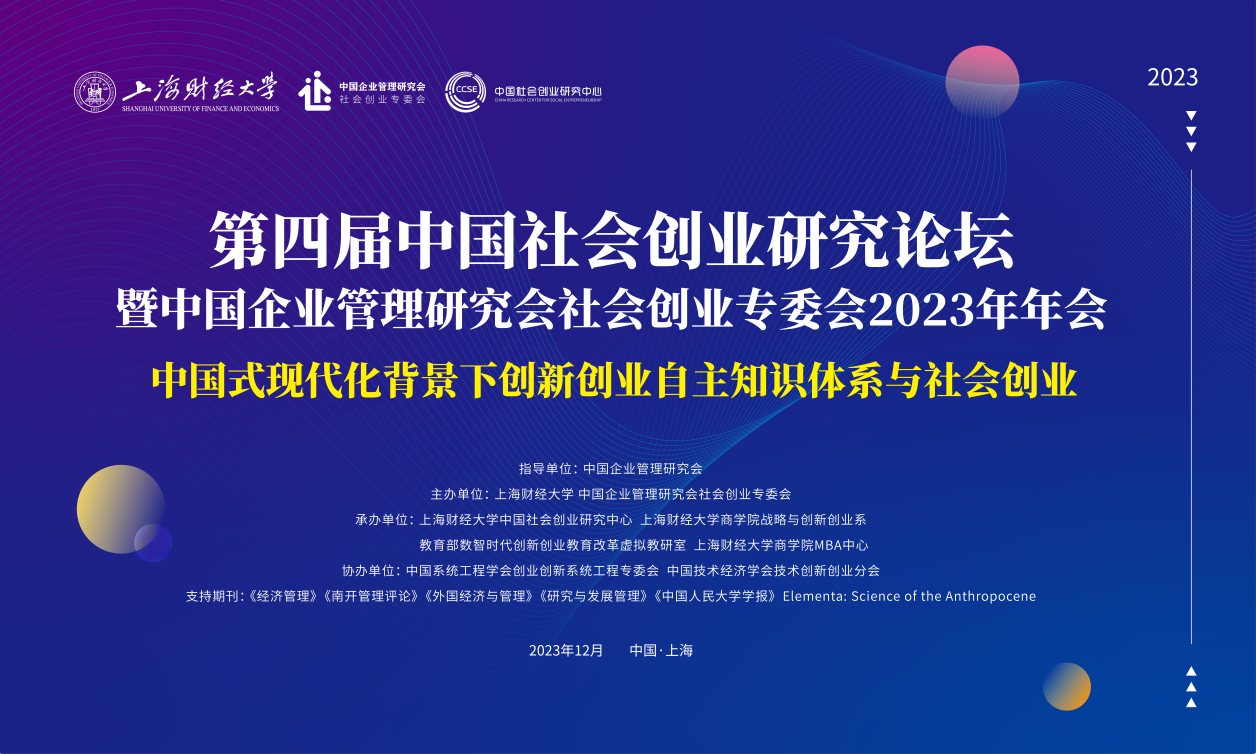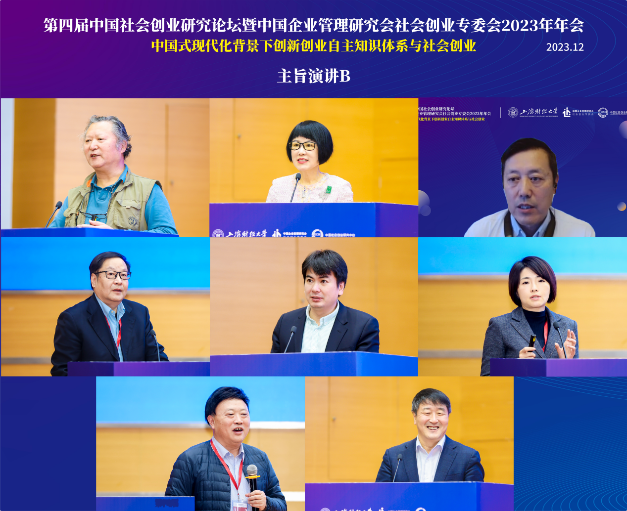 12月2日至3日,由中国企业管理研究会指导,上海财经大学、中国企业管理研究会社会创业专委会主办,上海财经大学中国社会创业研究中心、上海财经大学商学院战略与创新创业系、教育部数智时代创新创业教育改革虚拟教研室、上海财经大学商学院MBA中心承办,中国系统工程学会创业创新系统工程专委会和中国技术经济学会技术创新创业分会协办的第四届中国社会创业研究论坛暨中国企业管理研究会社会创业专委会2023年年会在我校举行。论坛围绕“中国式现代化背景下创新创业自主知识体系与社会创业”主题展开,主要分为2场主旨演讲、2场主题演讲、5场平行研究论坛和1场实践论坛。来自中国社会科学院、清华大学、中国人民大学、复旦大学、浙江大学、南开大学、吉林大学、同济大学、中国科学技术大学、对外经济贸易大学、中央财经大学、西南财经大学、明尼苏达大学等海内外近80所高等院校近250位专家学者参加会议。我校常务副校长徐飞,中国企业管理研究会会长黄速建,中国系统工程学会创业创新系统工程专委会主任、发展中国家科学院院士汪寿阳,吉林大学商学与管理学院教授、创新创业研究院院长蔡莉、浙江财经大学党委副书记,副校长(主持行政工作)魏江,中国人民大学商学院毛基业教授,清华大学华商研究中心主任、中国经济史研究中心主任龙登高,明尼苏达大学卡尔森管理学院创业学讲席教授Shaker Zahra,内华达大学商学院教授、Strategic Entrepreneurship Journal联席主编李涌,清华大学经管学院雷家骕教授、中国科学院大学教育基金会成思危基金理事长成卓,美国明德学院终身教授施瑜玮,吉林大学葛宝山教授、中央财经大学商学院院长林嵩教授、中国人民大学商学院副院长赵晶教授等发表致辞和主旨演讲,主旨演讲分别由中国企业管理研究会社会创业专委会主任、我校商学院刘志阳教授,浙江大学公共管理学院苗青教授和南开大学创新创业学院院长张玉利教授主持。论坛由《经济管理》《南开管理评论》《外国经济与管理》《研究与发展管理》《中国人民大学学报》等期刊提供学术支持。