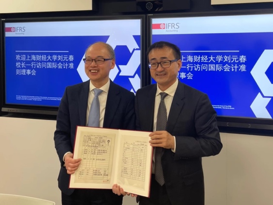 刘元春校长此行还访问了国际会计准则理事会(IASB)。IASB理事陆建桥博士介绍了国际会计准则发展历程以及中国和上海财经大学参与的情况、国际财务报告准则基金与国际会计准则理事会的简况、参与国际会计准则制定的体会。刘校长介绍了我校的最新发展情况,表示愿在人才培养与推荐、科研交流与合作等方面与IASB携手合作。