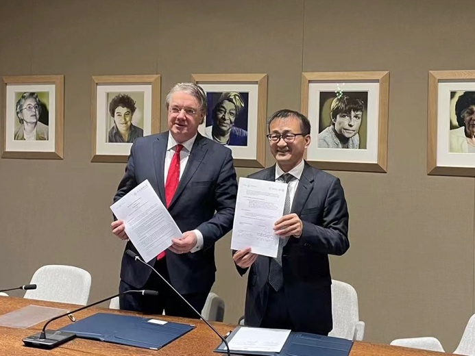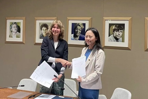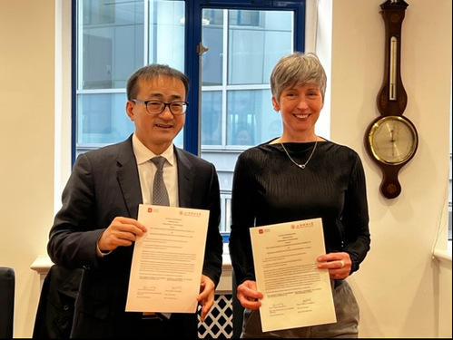 在访问荷兰阿姆斯特丹大学期间,代表团与该校经济与商学院院长Roel Beetsma、副院长Peter Boswijk等学者代表进行了会谈。双方就各自人才培养目标、研究重点特长、未来可合作领域等方面进行了广泛讨论。刘校长表示我校全面重启与推进同世界一流大学的双边合作,用世界标准衡量我校人才培养、科学研究与服务社会水平的提升。双方一致同意共同开发硕博层次的联合培养项目,围绕ESG、可持续发展等课题加强科研合作。会谈期间,刘莉亚校长助理与Roel Beetsma院长代表双方新签院级学生交换合作谅解备忘录。