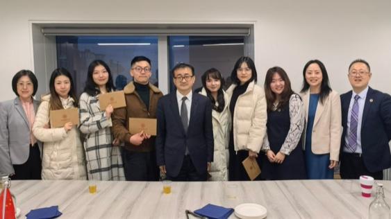 代表团此行还访问了中国驻英国大使馆,拜会了特命全权大使郑泽光与教育公参张晋。刘校长为在馆领导及馆员做题为《波浪式曲折中复苏的中国宏观经济》的讲座。