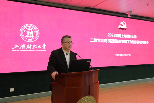 12月27日上午,上海财经大学在行政楼一楼报告厅召开2023年度二级党组织书记抓基层党建工作述职评议考核会。校领导许涛、徐飞、方华、陈信元、姚玲珍、朱鸣雄、何鹏程、刘莉亚、刘庆生出席会议。教育部党建工作联络员陈晓漫到会指导。会议由党委组织部部长周国良主持。