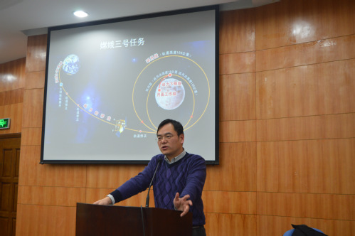 12月19日,中科院上海技物所舒嵘副所长做客我校“科学•人文大讲堂”,应邀为我校学生作“从月球到火星,中国宇宙探索的脚步不断迈向深邃太空”主题报告。报告在同德楼一楼报告厅举行,140多位师生聆听了报告。学生工作部(处)部长倪志兴、金融学院常务副院长柳永明、金融学院党委副书记方卉在报告会前同舒嵘副所长就人才培育、军民融合等方面进行了交流。