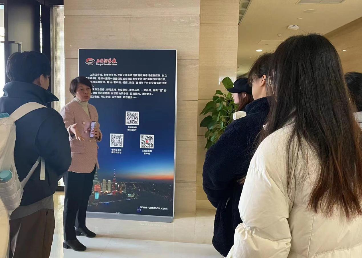 在实地考察环节中,上证报投教中心主任张勇军为同学们悉心讲解了上证报的历史发展、编辑理念以及市场定位。她不仅分享了上证报的历史故事,还就同学们以后的实习实践和职业规划提供了宝贵建议。经济新闻系校友张宇带领同学们参观了报社的各个部门,同学们对上证报采编、经营等部门的工作环境和工作流程有了直观体验。