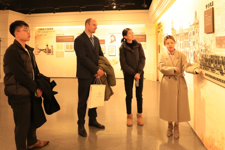 会谈后,洋风领事一行参观了我校校史馆和商学博物馆。