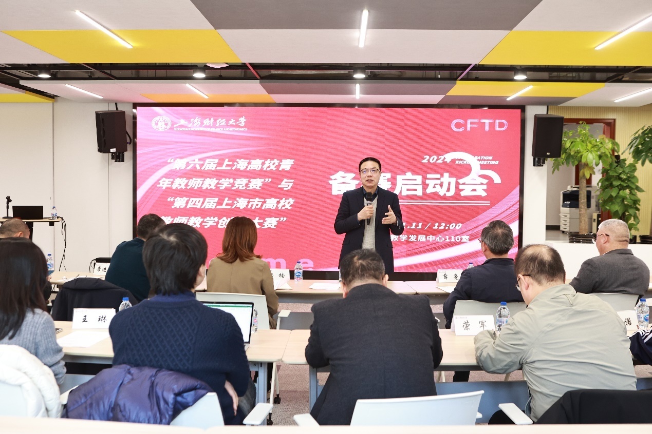 为做好第六届上海高校青年教师教学竞赛、第四届全国高校教师教学创新大赛准备工作,鼓励全校教师积极参赛、争创佳绩,1月11日中午,我校两项大赛的备赛启动会在教师教学发展中心110室举行。校常务副校长徐飞、校工会常务副主席薛亮、教师教学发展中心主任杨楠、教务处副处长兼匡时书院副院长江晓东、数学学院院长徐定华、数学学院副院长杨世海、经济学院副院长兼匡时书院副院长常进雄、人文学院副院长林晖、人文学院副院长刘长喜、外国语学院副院长郭鸿杰、国际文化交流学院副院长荣军、第四届上海市高校教师教学创新大赛参赛教师、第六届上海高校青年教师教学竞赛参赛教师、部门工会主席等共计40多人参加了启动会。启动会由教师教学发展中心副主任刘可伋主持。