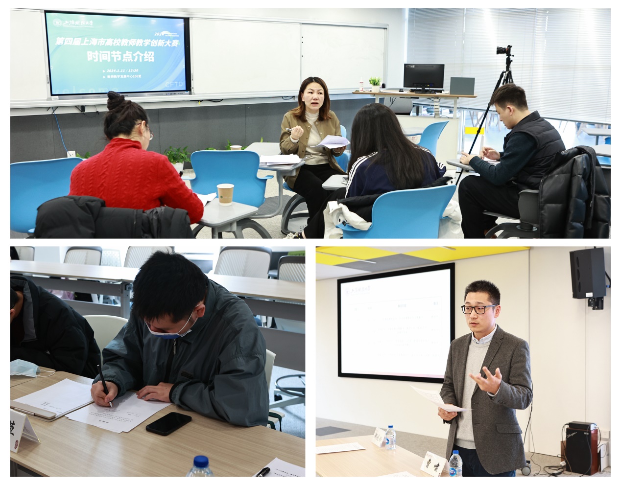 在两项大赛的参赛教师们签署参赛个人承诺书后,就教创赛和青教赛两个不同赛事,教发中心开设分会场,由中心主任杨楠教授和副主任刘可伋教授分别就赛事关键点、集训时间节点安排等具体事宜进行了介绍和布置。