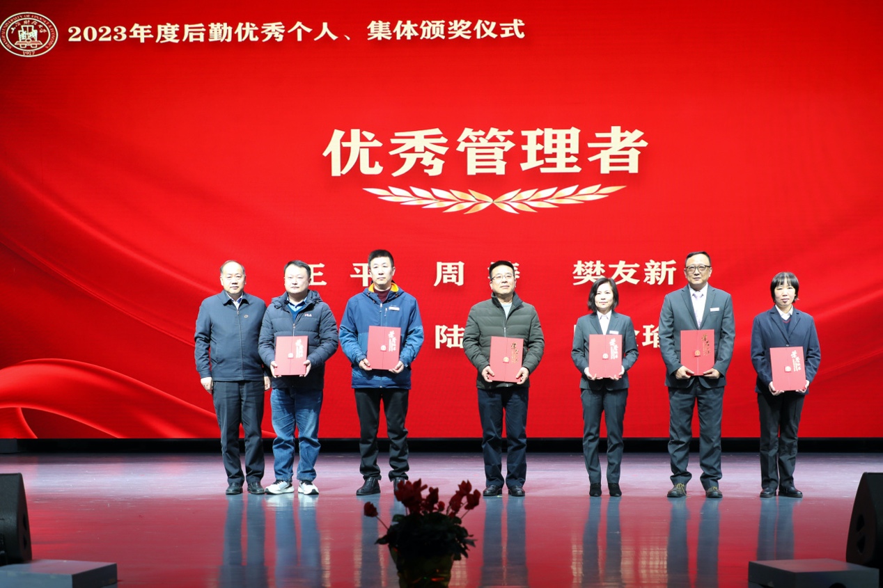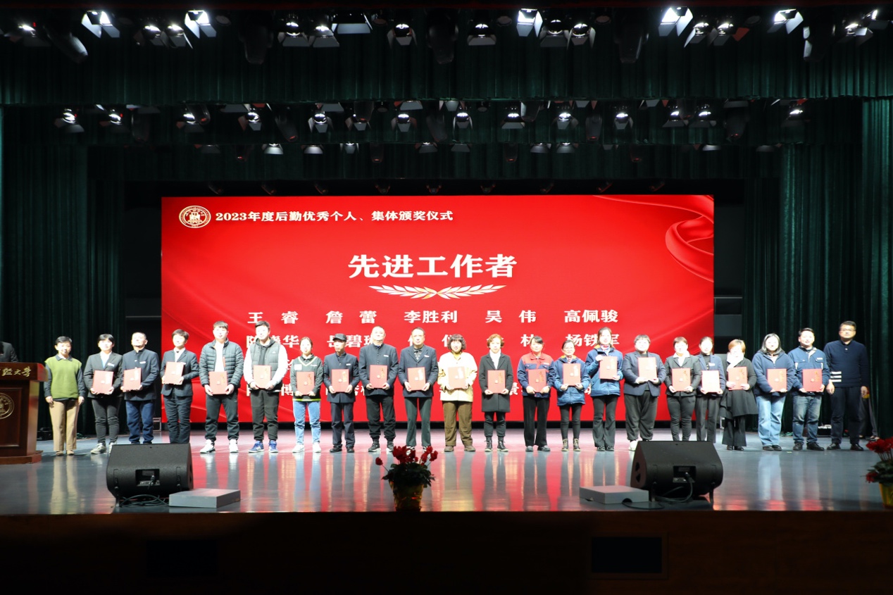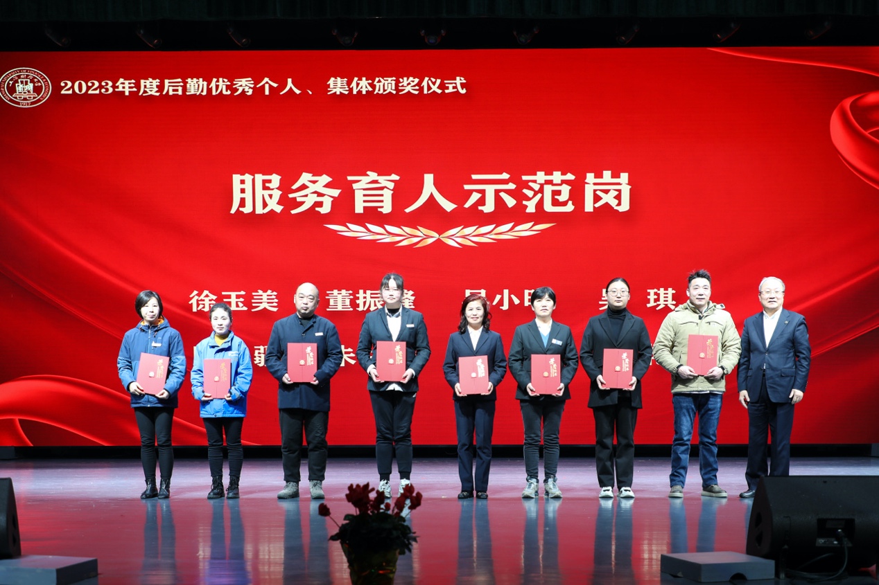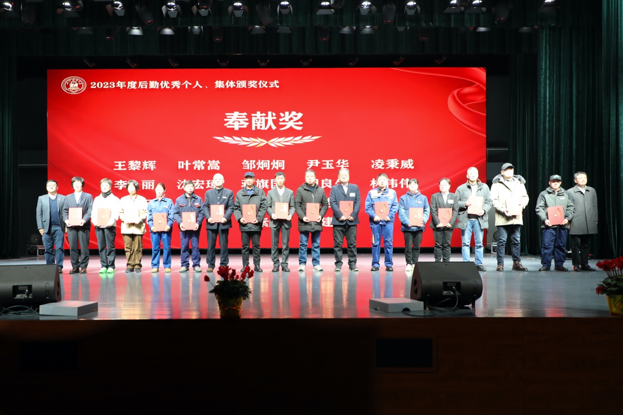 颁奖仪式由后勤管理处处长袁海萍主持。仪式上对“服务育人示范岗”“岗位工匠”“优秀管理者”“先进工作者”“生态文明建设标兵” 5项个人奖项共计68名员工,“服务育人示范窗口”4个先进集体进行了表彰,并为2023年在后勤岗位上光荣退休的18名员工颁发了“奉献奖”。获奖个人及优秀集体代表依次上台领奖,与会校领导许涛、方华、朱鸣雄、刘庆生及各职能部门领导分别为获得表彰的员工颁奖。