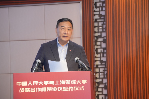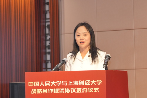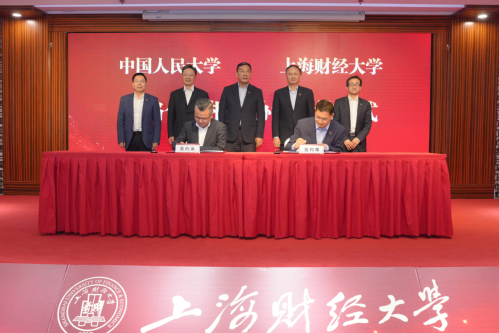 中国人民大学党委书记张东刚、上海财经大学党委书记许涛出席仪式并讲话,教育部社会科学司司长徐青森,上海财经大学校长、党委副书记刘元春,中国人民大学党委副书记郑水泉出席并见证签约,中国人民大学副校长郑新业与上海财经大学副校长李增泉共同签署协议。