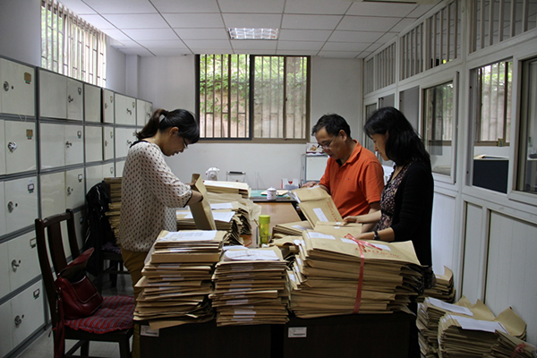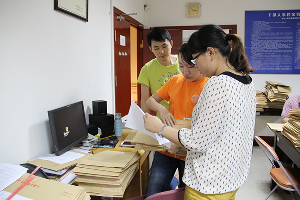6月底,我校2014届毕业生纷纷离校。但对他们来说,还有一件重要的事情,就是其人事档案由学校转到就业单位、委托保管档案的机构或户籍所在地的人才中心等部门。只有接收到个人档案,相关单位才能启动报到、落户、社保办理等程序。所以,把毕业生档案在短时间内及时、准确、安全的从学校转到相关单位尤为重要,它关系到每位毕业生的切身利益,关系到我校的社会形象。面对这样一项时间紧,任务重的工作,人事档案科全体员工坚持以学生为本的原则,放弃暑假休息,集中时间转递档案;本着对毕业生高度负责的态度,认真、细致、耐心的审核每一份档案材料,查看是否有错装、漏装的现象;审核转递地址是否符合机要件投递要求,否则将无法投递。对材料不全、地址不准确的档案,工作人员都及时与辅导员、毕业生本人联系、沟通,确保档案材料齐全、准确寄出。