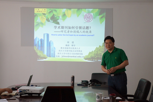 为起到学术期刊引领话题作用,《外国经济与管理》全面实行栏目主持人制度。5月29日下午,“公司治理”栏目主持人南开大学周建教授应邀来到学术期刊编辑部作专题报告“学术期刊如何引领话题”。