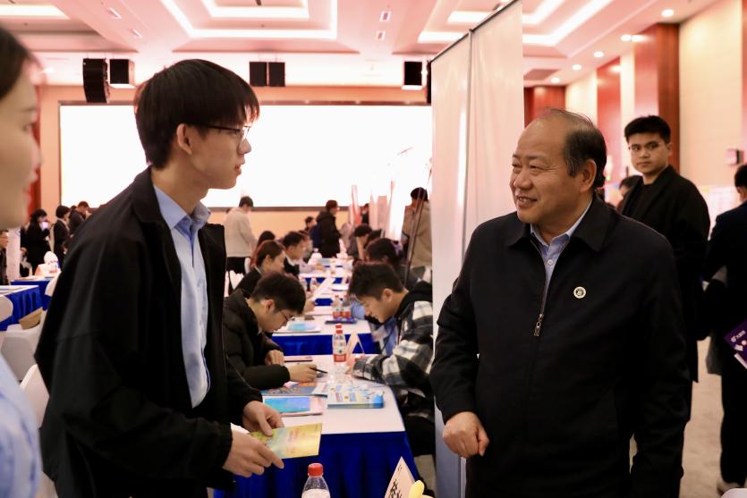 校党委副书记朱鸣雄对本次招聘会予以高度重视,现场与企业招聘负责人、返校招聘校友、参会求职毕业生亲切对话,了解学生就业预期与发展规划,勉励学生珍惜时光,不负韶华,并在现场沟通用人单位需求。