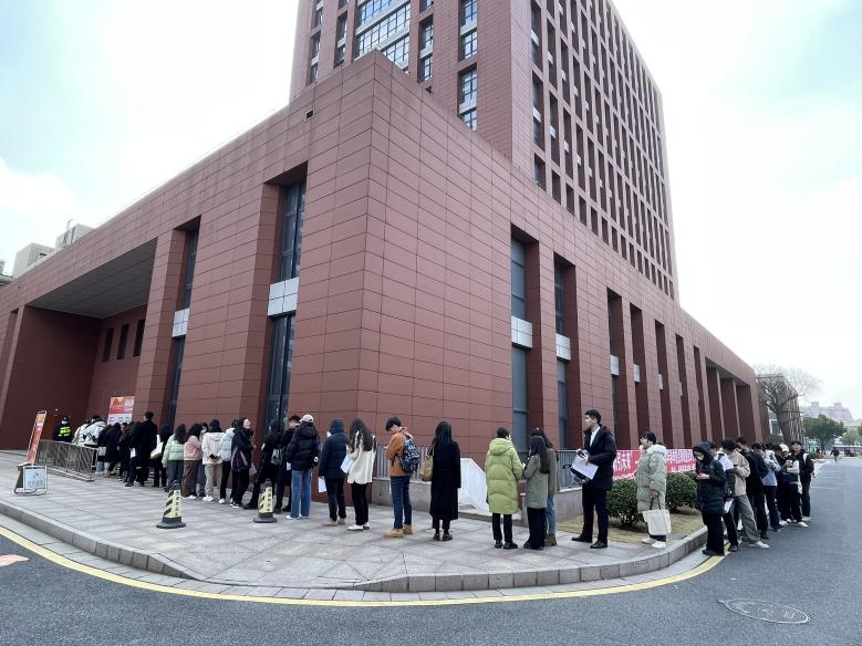 我校开春首场招聘会,供需两端蓄势待发,13点30分,招聘会在我校科研实验楼一楼报告厅正式拉开帷幕,同学们着装得体,严阵以待,在自己感兴趣的企业摊位前驻足问询,踊跃投递简历,积极向用人单位了解岗位需求和后续招聘事宜,展现出上财学子昂扬的精神面貌与投身社会建设的热忱愿景;现场各单位招聘负责人也热情回应,对工作内容、培训机制、岗位要求等问题进行了详尽的回复。现场还设立“留学咨询“专区,专人现场讲解留学资讯和经验分享,为有留学意愿的同学答疑解惑。