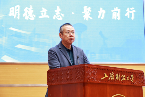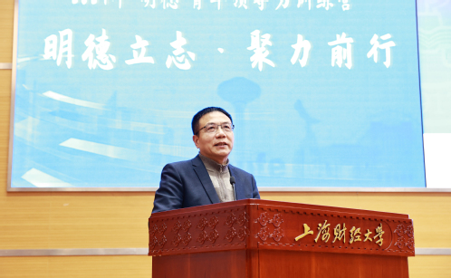 随后,明德基金捐赠人、校董武飞先生致辞。武飞先生讲述了自己开设“明德”基金的初衷,是为了在上财学子的心中埋下一颗领导力的种子,以期在未来的人生路上生根发芽,他从“明德”青年领导力训练营的培养目标出发,要求学员要甘于被领导,砥砺担领导;要积极抓机遇,培养领导力;要领悟领导力知识,并学以致用。武飞先生的致辞让“明德”营员们倍受启发。