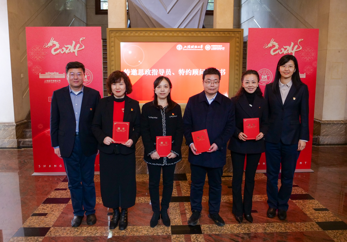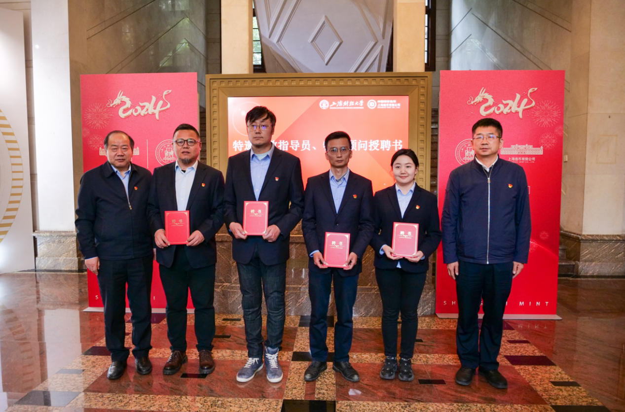 为进一步推动双方机制共建、资源共享、队伍共育,许涛书记和刘科书记共同为“校企合作实践教学点”揭牌。上币推荐刘洪鹏、朱熙华、谢欣锐、汪哲涵等首席设计师、工艺大师、红色货币文化研究员,担任上财“特邀思政指导员”,共同参与高校思政工作。上财推荐学校经济、商学等领域的专家学者应望江、喻世红、燕红忠、叶巍岭担任上币“特约顾问”,共商、共研、共议党建引领高质量发展的创新路径。上海财经大学党委副书记朱鸣雄,党委副书记、纪委书记何鹏程共同为上币“特邀思政指导员”颁发聘书。上海造币有限公司副总经理李婉宜、袁展宏共同为上财“特约顾问”颁发聘书。
