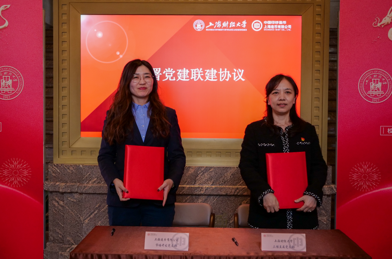 上海财经大学党委副书记朱鸣雄与上海造币有限公司副总经理李婉宜代表校企双方就党委联建签署协议。同时,上财三馆直属党支部与上币市场开发党支部也在之前合作开展“枪杆子和钱袋子——红色票据(货币)专题展”的基础上,签约党支部联建协议,为进一步加强支部共建打响头炮。两个支部将积极推动学校商学博物馆与上海造币博物馆强化馆际交流合作,携手讲好上海城市发展故事。