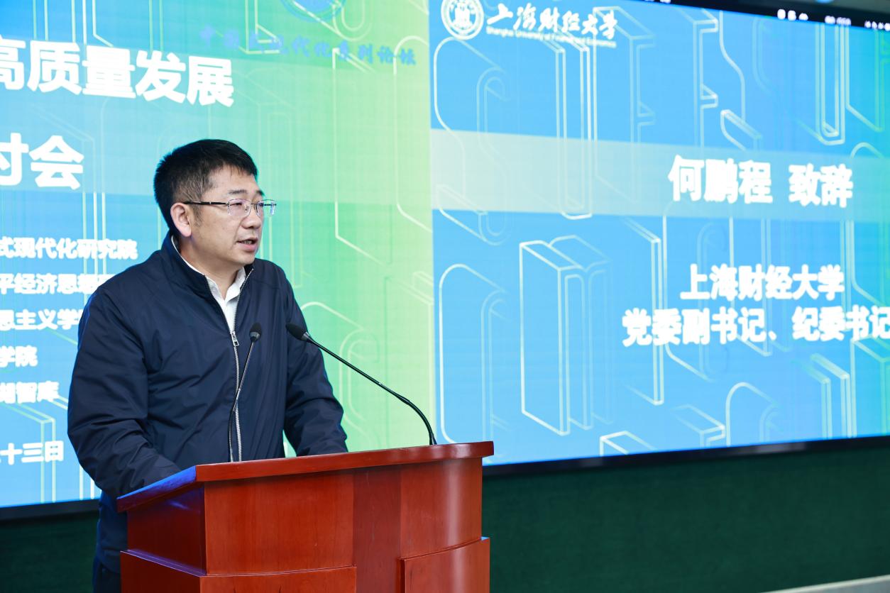 上海财经大学党委副书记、纪委书记何鹏程致开幕辞。何书记指出,近年来上海财经大学立足自身教学研究特点,先后成立“中国式现代化研究院”和“习近平经济思想研究院”等高端智库平台,为党的创新理论学理化体系化做出了独到贡献,此次会议是学校加强习近平经济思想研究阐释的又一次重要学术活动。