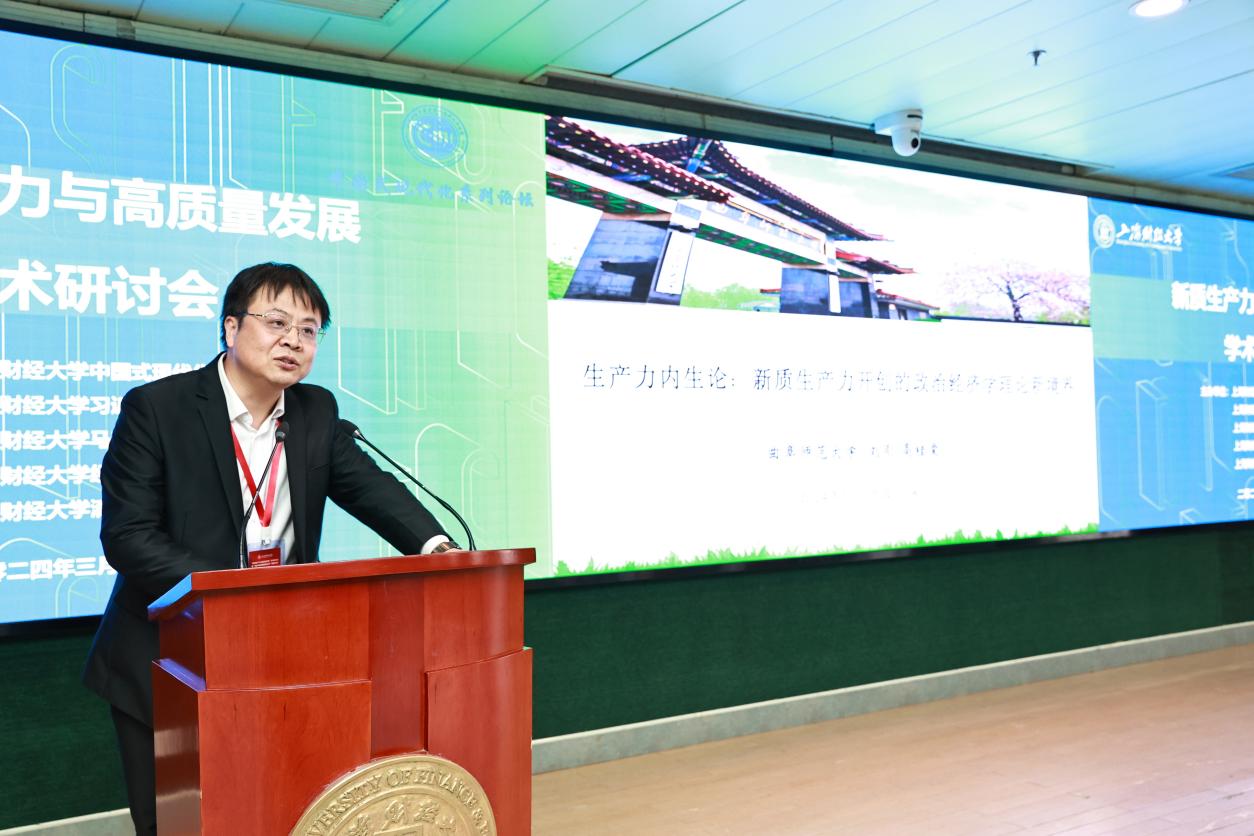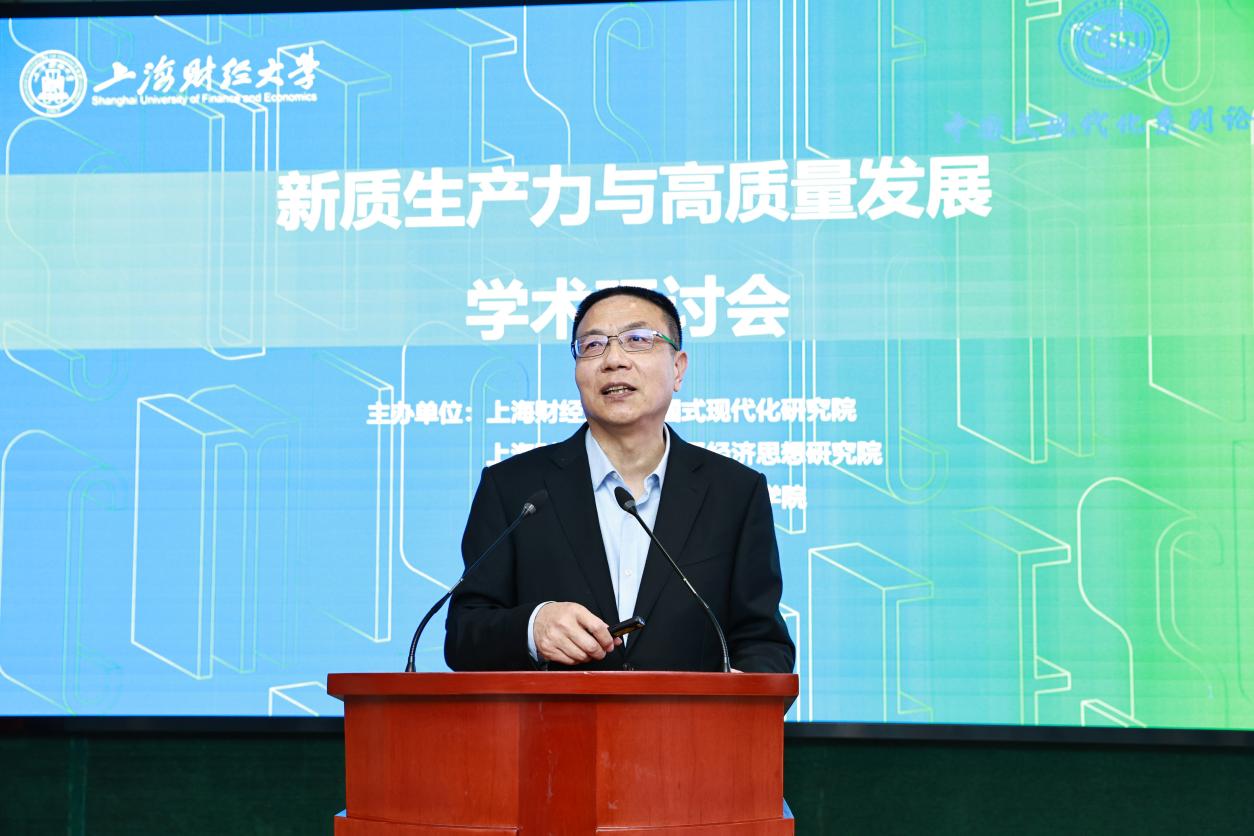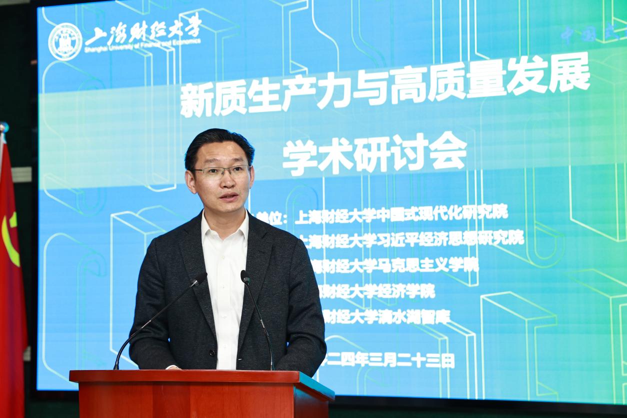 为认真学习贯彻中共中央政治局第十一次集体学习精神,上海财经大学中国式现代化研究院、习近平经济思想研究院、马克思主义学院、经济学院、滴水湖智库于2024年3月23日联合主办“新质生产力与高质量发展”学术研讨会,来自中国社会科学院、北京大学、清华大学、中国人民大学、上海社会科学院、曲阜师范大学、扬州大学等高校和研究机构的知名专家学者以及我校师生、媒体代表60多人出席了会议。与会专家就新质生产力的重大理论和现实问题进行深入研讨,产出了丰富的理论成果。