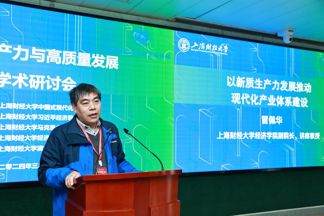 上海财经大学经济学院副院长冒佩华教授以“以新质生产力发展推动现代化产业体系建设”为题发言。冒佩华教授指出,第一,新质生产力发展的内涵及其内在规律对马克思主义生产力概念和生产力一般规律进行了延展;第二,新质生产力应赋能产业体系的数字化、绿色化和融合化转型,以抢占未来发展高地;第三,要切实加强质量支撑和标准引领的带动作用,以高标准引领重点产业高质量发展。
