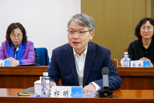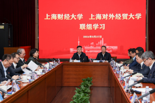 为深入学习贯彻习近平总书记在二十届中央纪委三次全会上的重要讲话精神,切实把思想和行动统一到习近平总书记关于党的自我革命的重要思想上来,两校联合开展党委中心组联组学习会。许涛、祁明讲话。上海对外经贸大学党委副书记、纪委书记章益国主持学习会。